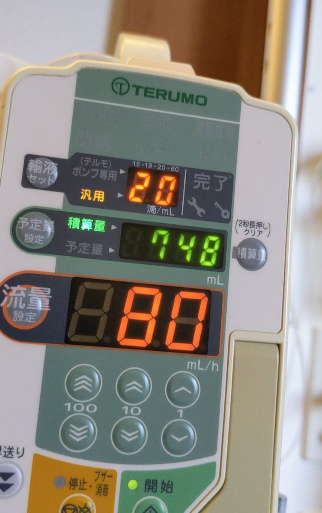 点滴换成了消炎药和营养药。还多了一个输液管理机器。